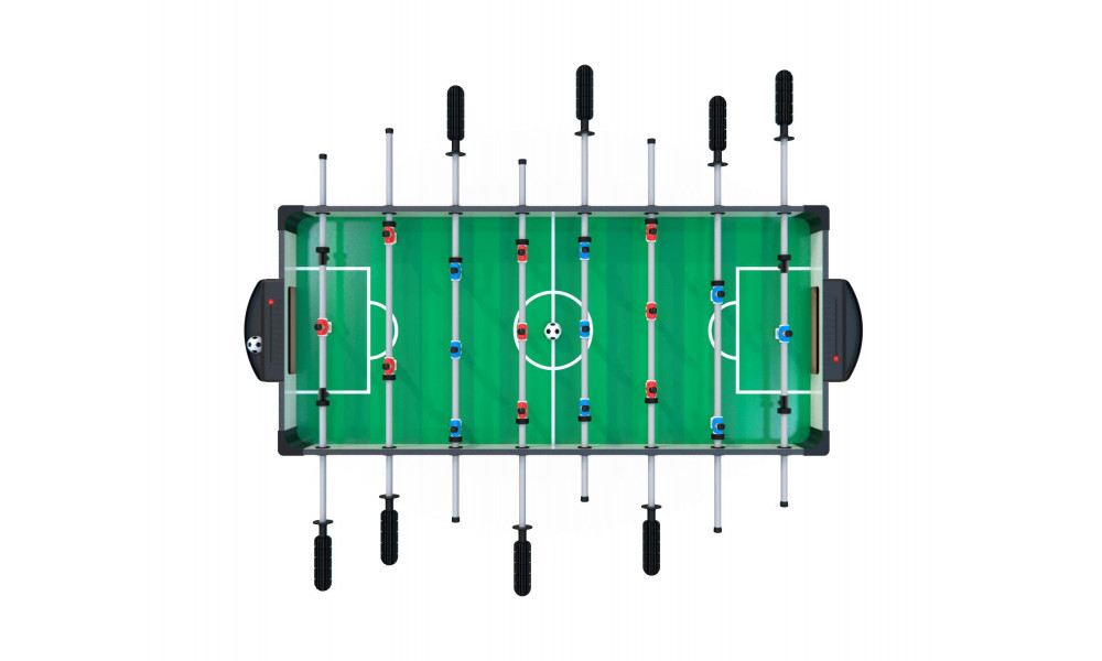 Игровой стол DFC WORLDCUP PRO с более широким игровым полем и утолщёнными стрежнями. Выполнен из прочного и долговечного материала – МДФ, который гарантирует стабильность и надежность конструкции. Толщина в 12 миллиметров со стороны игроков и 5 мм с боковых сторон обеспечивает прочность и устойчивость к повреждениям. Размеры бортиков: 80 х 11,6 х 1,2 см – с длинной стороны, а 45,6 х 11,6 х 1,2 см – с короткой. Ламинированное ПВХ покрытие игрового поля придает столу привлекательный вид и повышает его износостойкость. Размеры игрового поля составляют 77,5 х 45,5 сантиметров, что делает игру комфортной и захватывающей. В комплекте с настольным футболом вы получите два футбольных мяча, которые обеспечат реалистичность игры, и механический счетчик для подсчета очков. Утолщённые стержни диаметром 12,7 мм уже в сборе с игроками. Ножки толщиной 9 мм, перекладина между ножками толщиной 4,2 мм.