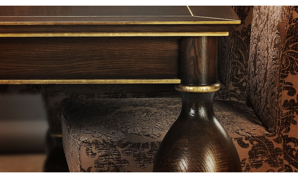 Мебельная серия «Буржуа I» станет выразительным дополнением «со вкусом» не только вашей столовой, но и гостиной. Настоящая находка для любителей изящного и элегантного стиля. Выразительная форма ног придает утонченный образ всей серии. Сбалансированная тонировка поверхности, глубокий насыщенный темный с золотыми нитями фактуры древесного волокна достигается ручным способом втирания золотой пасты, по авторской технологии.